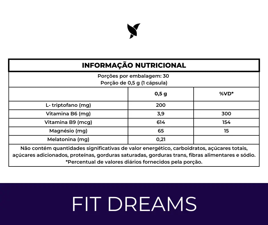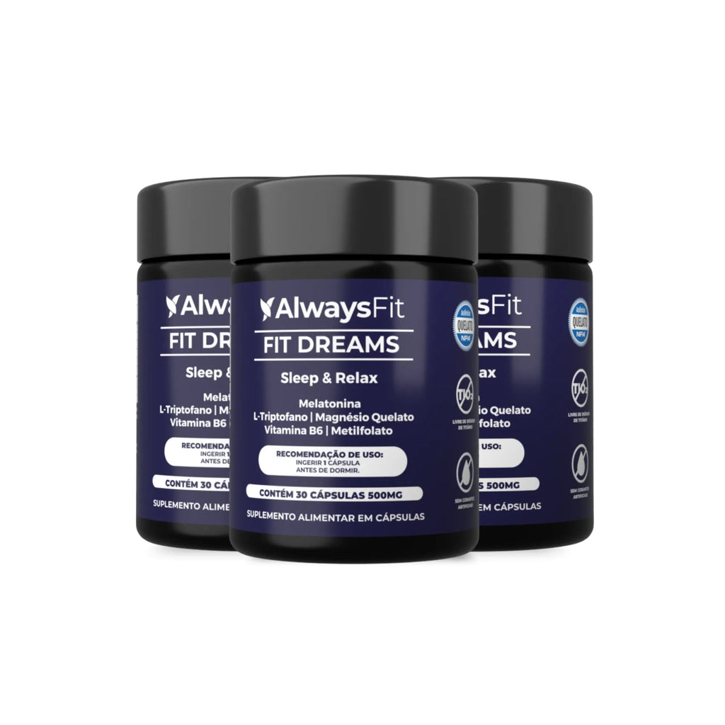FitDreams® - Sleep e Relax é um suplemento alimentar em cápsulas que combina melatonina, magnésio, triptofano e vitaminas do complexo B (B6 e B9 na forma ativa L-metilfolato). Uma fórmula prática para incluir na rotina noturna, com ingredientes que participam de diversas funções metabólicas no organismo.