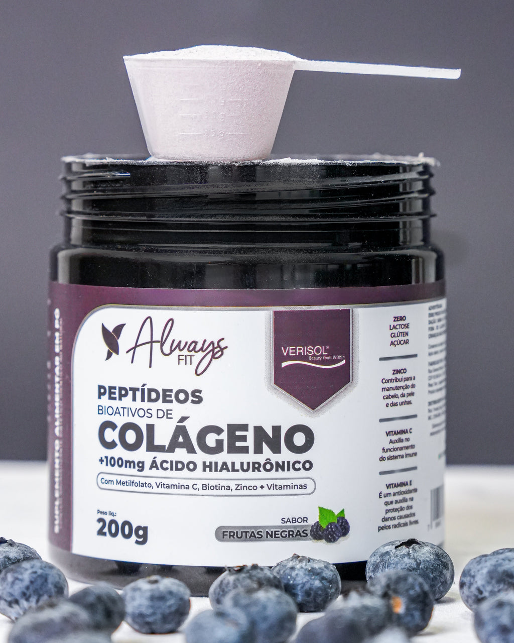 Ingredientes: Goma acácia (Acacia senegal L.), peptídeos bioativos de colágeno hidrolisado com peso molecular médio de 2kDa, metilsulfonilmetano (MSM), ácido ascórbico (Vitamina C), hialuronato de sódio (fermentação de Streptococcus zooepidemicus), concentrado de cenoura e hibisco, bisglicinato de zinco, DL-alfa-tocoferol (Vitamina E), D-pantotenato de cálcio (Vitamina B5), acetato de retinol (Vitamina A), selenometionina, L-metilfolato de cálcio (Vitamina B9), D-biotina (Vitamina B7), metilcobalamina (Vitamina B12), antiumectante dióxido de silício, aroma idêntico ao natural, acidulante ácido cítrico e edulcorante sucralose.ALÉRGICOS: PODE CONTER LEITE.NÃO CONTÉM GLÚTEN. Cada unidade contém 200g.